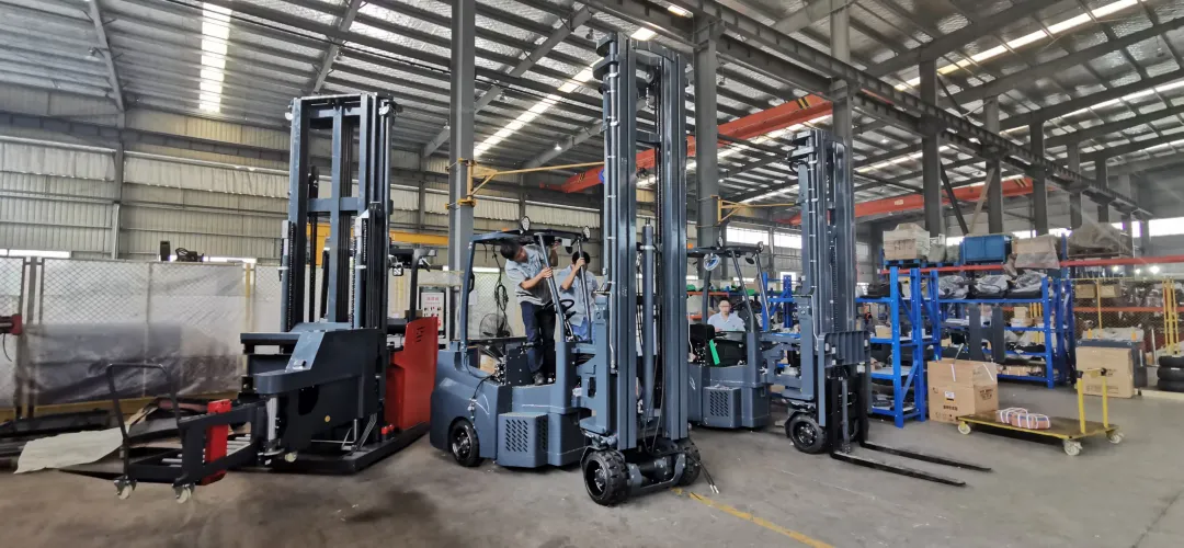 中叉網(wǎng)參觀同時,我司領(lǐng)導(dǎo)重點向中叉網(wǎng)代表介紹了兩款明星產(chǎn)品:MJ鉸接式叉車和MCC人上型叉車。其中MJ鉸接式叉車主打室內(nèi)外一站式搬運與窄通道堆垛的雙重特點,既具有普通平衡重叉車的高效率與高適用性,又具有窄通道叉車的極窄堆垛通道與高位堆垛。